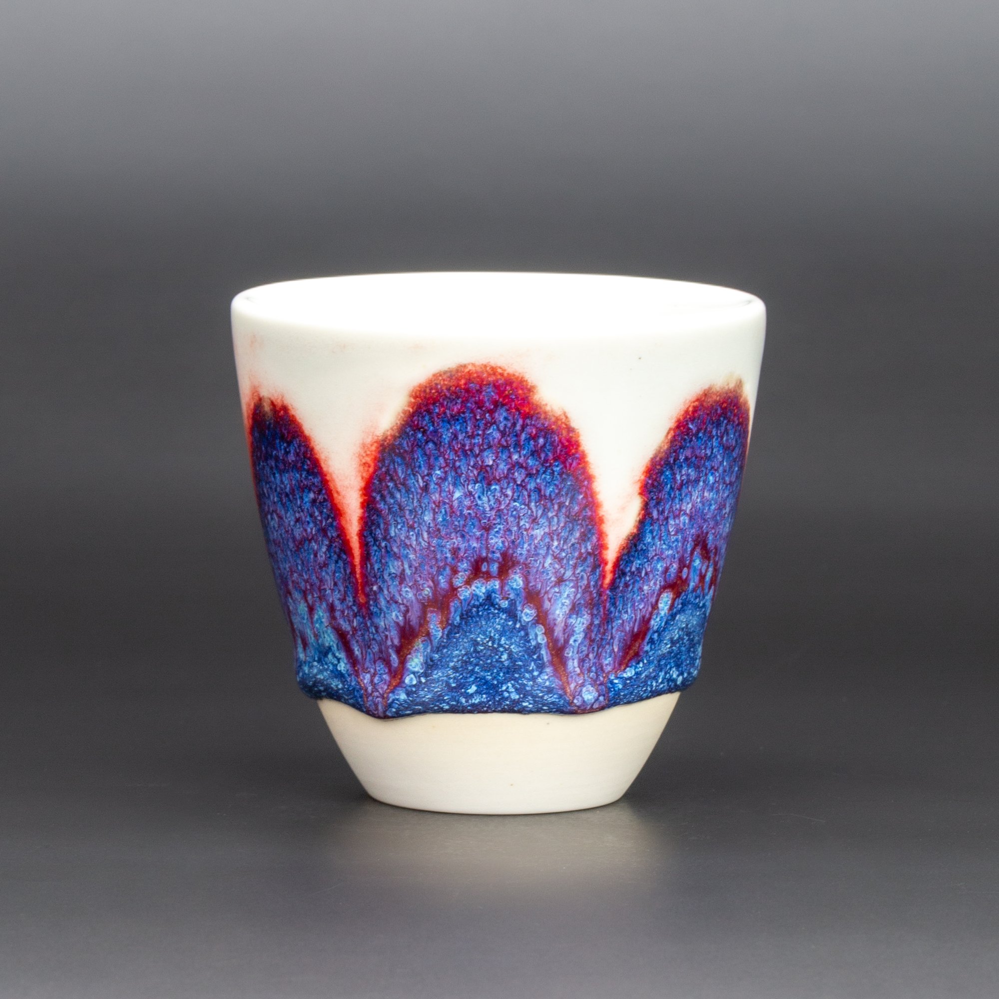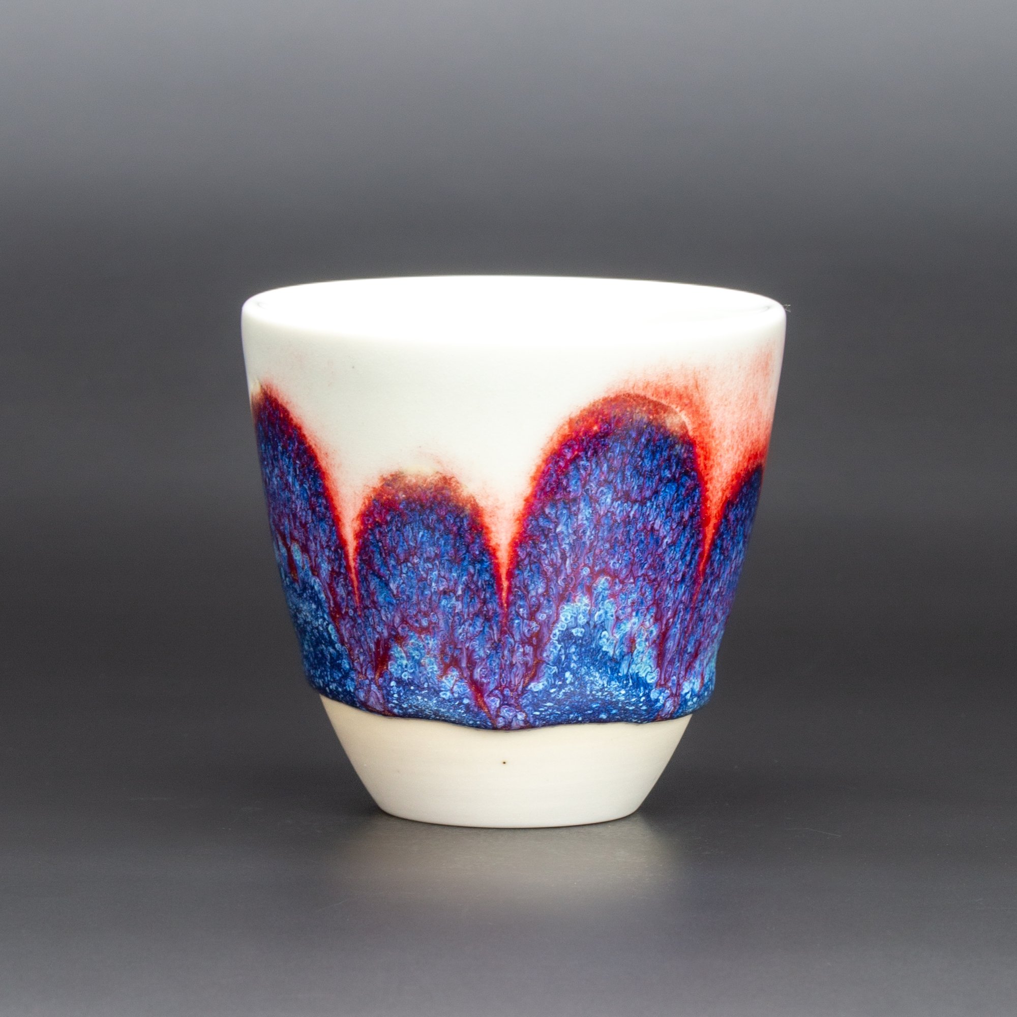 Wheel thrown Keane Lumina porcelain, layered and hand painted glazes, reduction fired to 1310 degrees C.