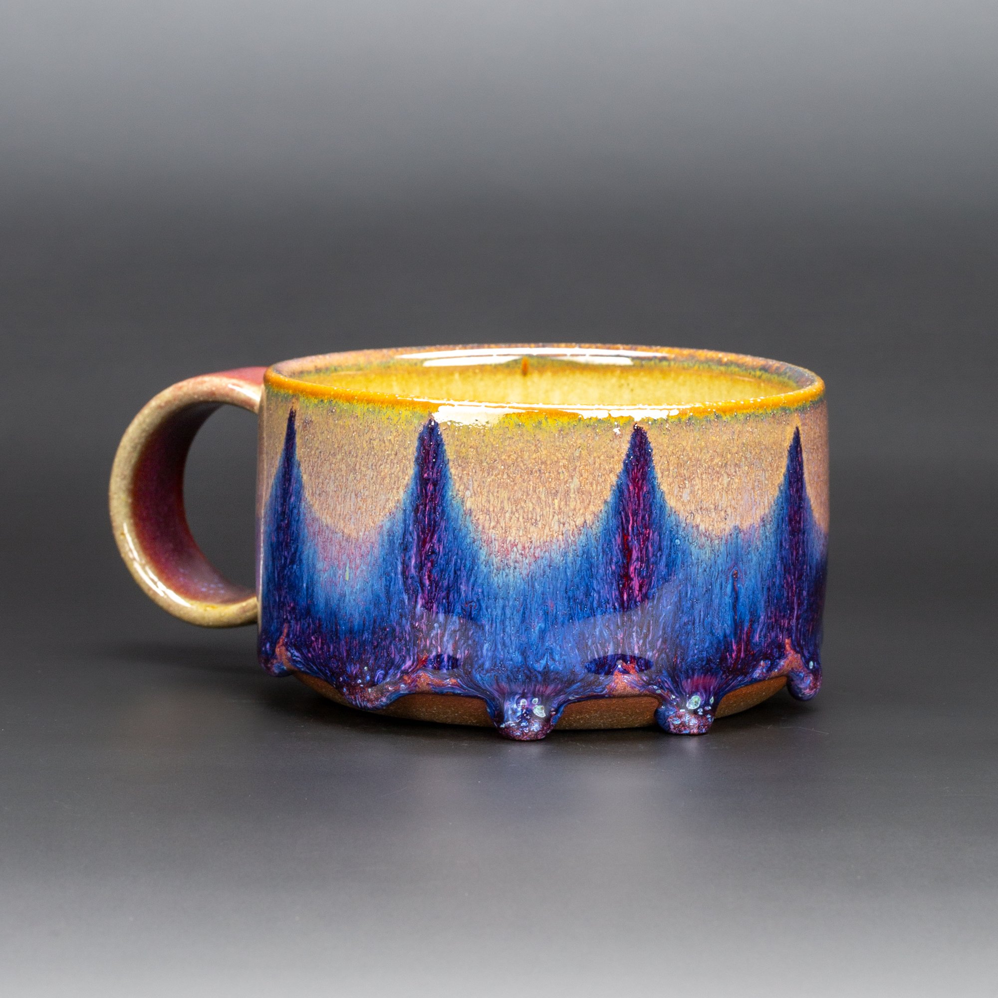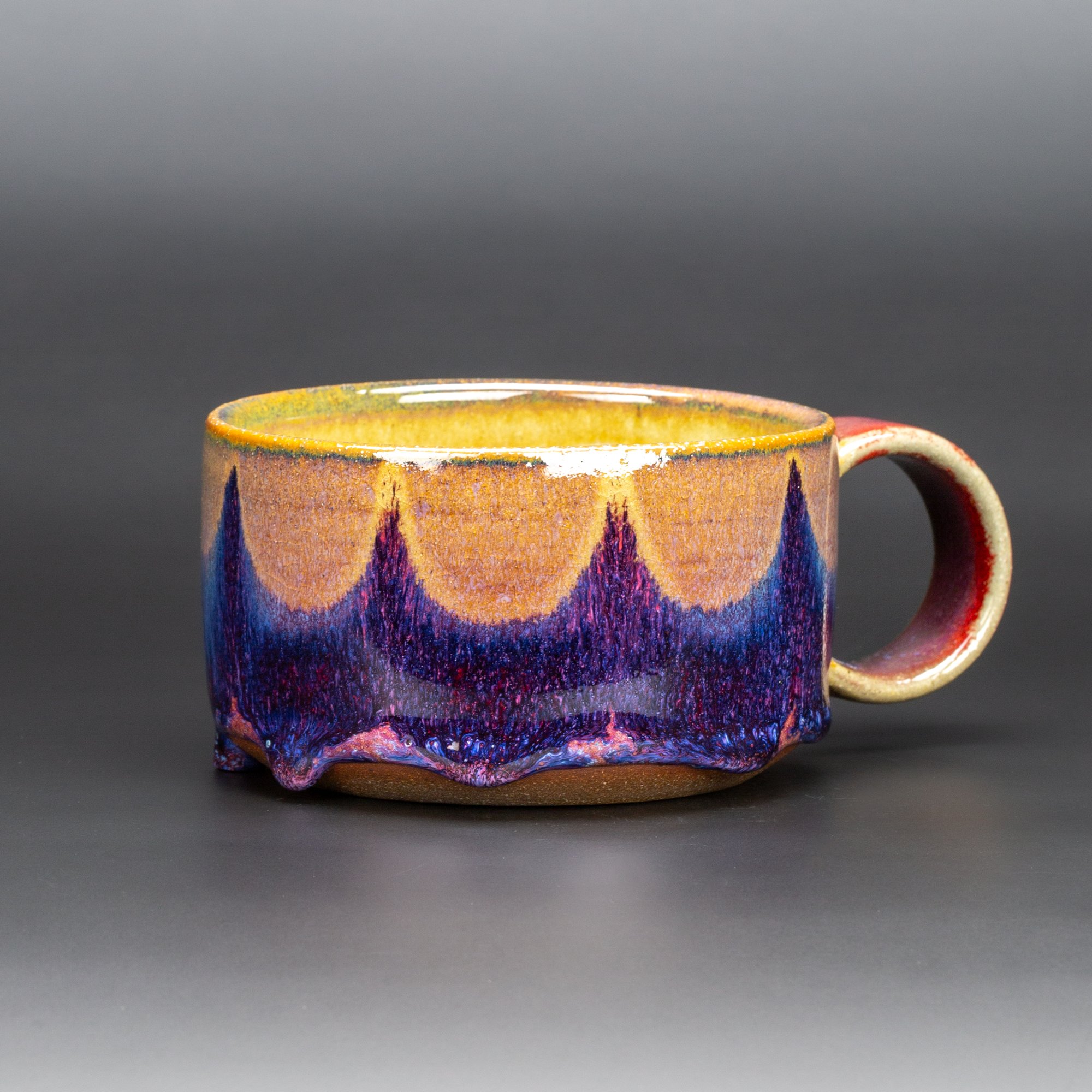 Wheel thrown dark stoneware, hand painted glaze applications, reduction fired to 1310 degrees C.