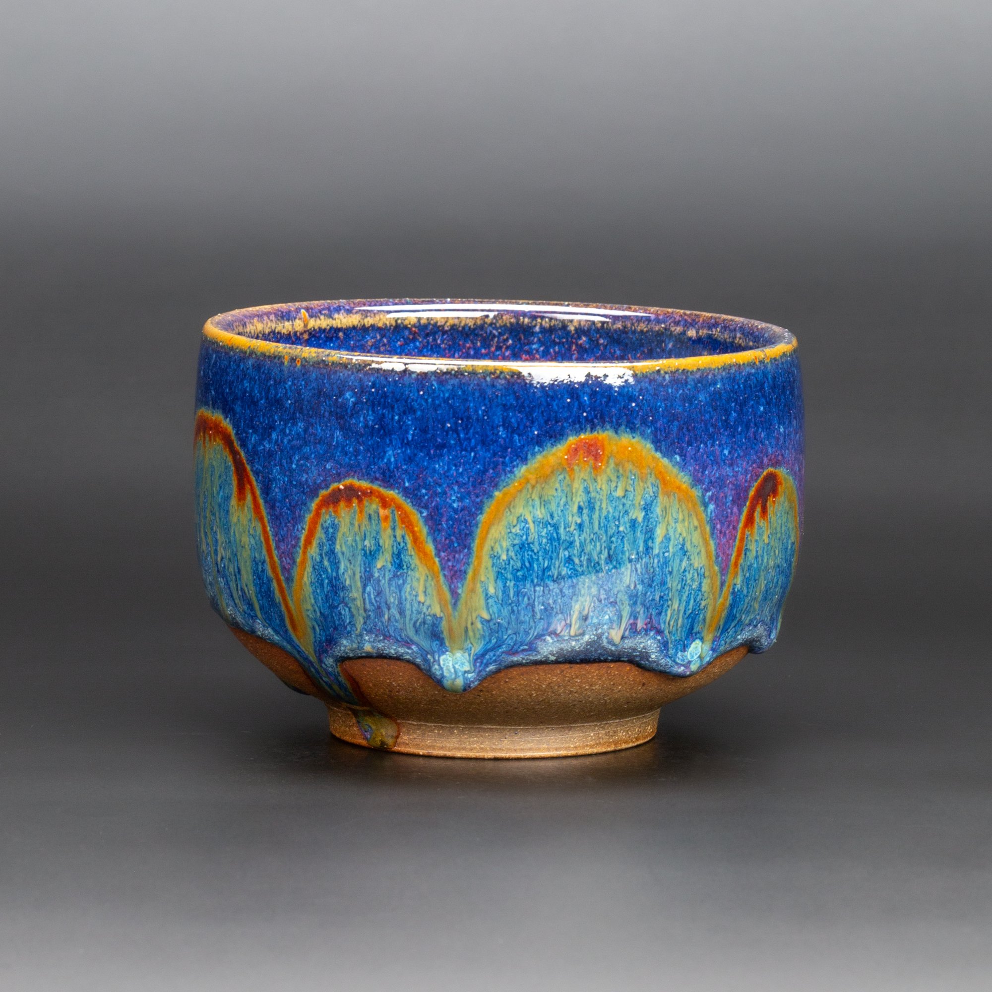 Wheel thrown dark stoneware, layered and hand painted glazes, reduction fired to 1310 degrees C.