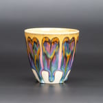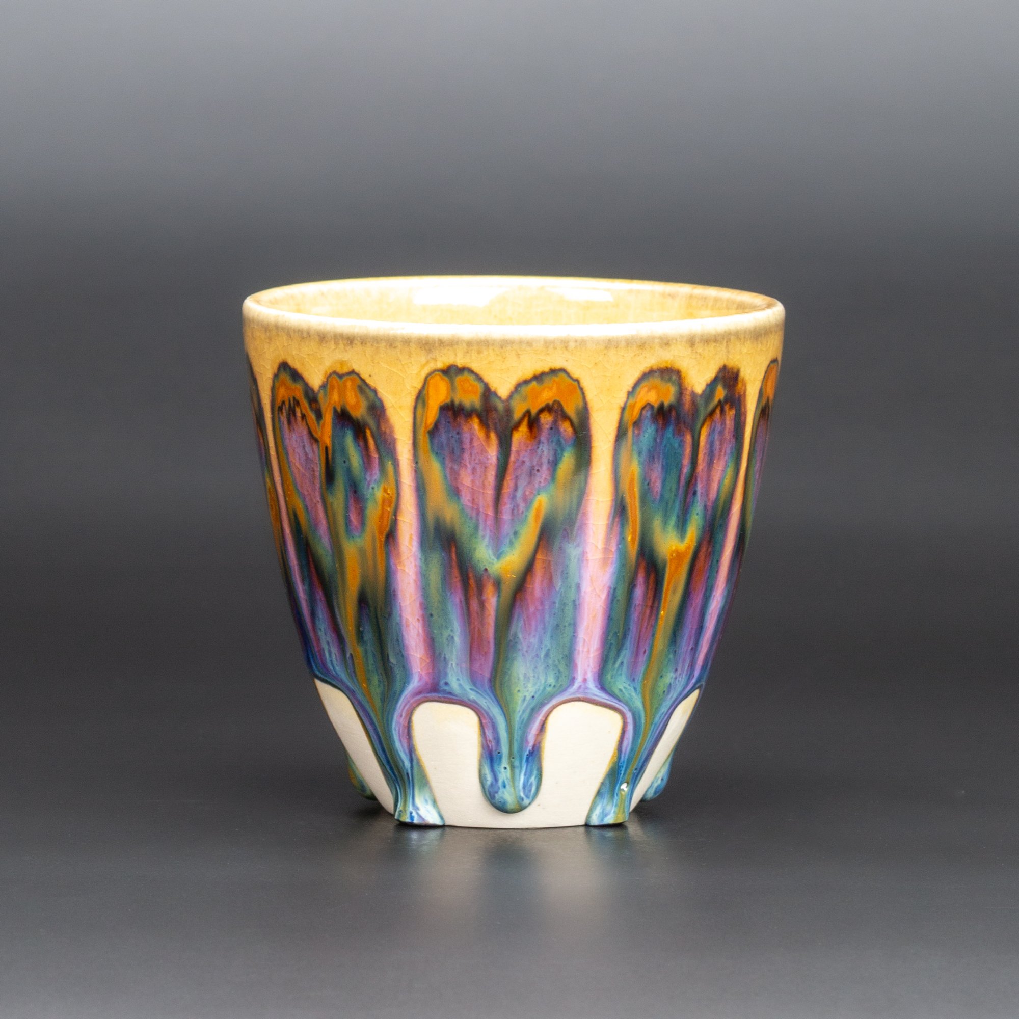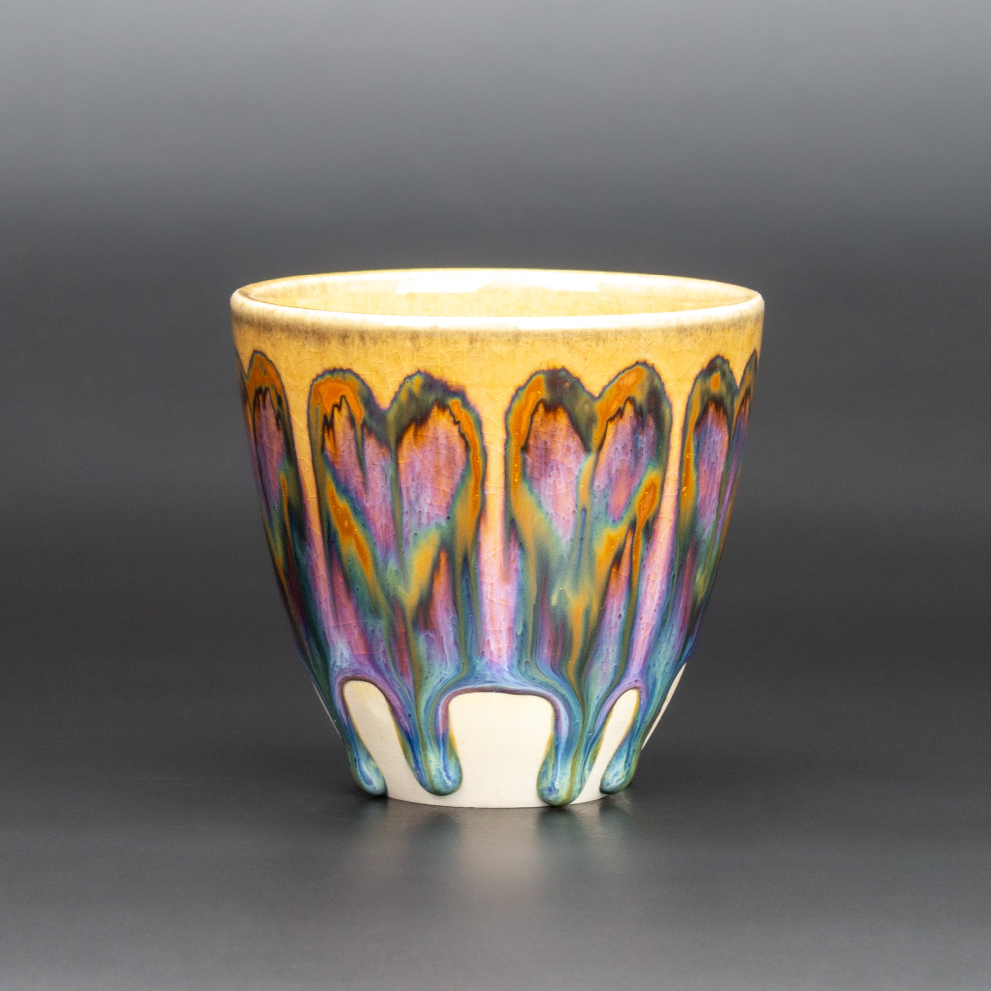Wheel thrown fine white stoneware, layered and hand painted glazes, reduction fired to 1310 degrees C.
