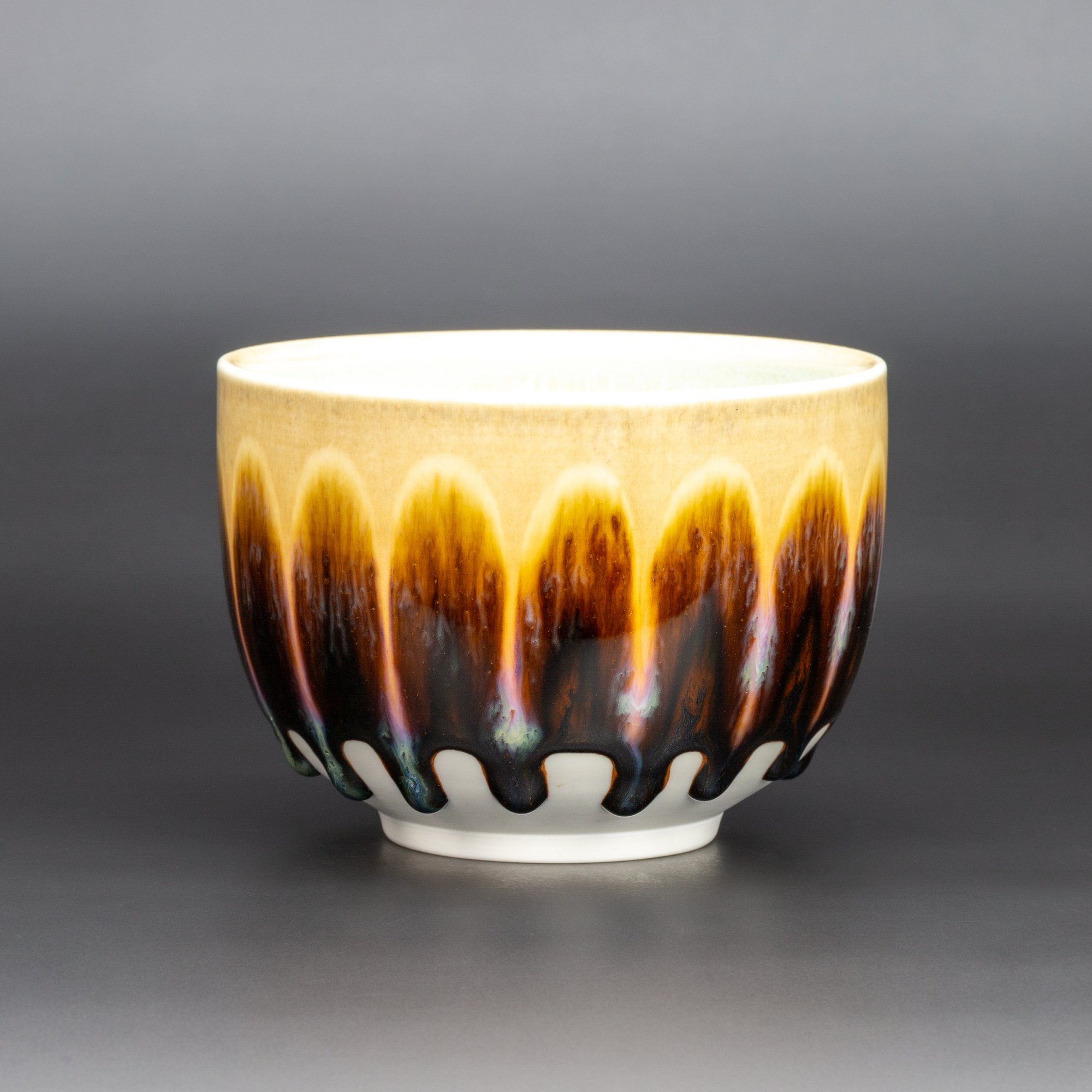 Wheel thrown Keane Lumina porcelain, layered and hand painted glazes, reduction fired to 1310 degrees C.