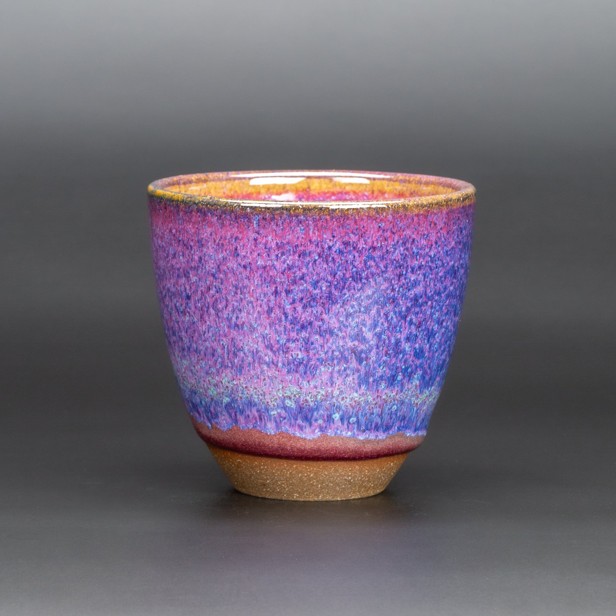 Wheel thrown dark stoneware, layered and hand painted glazes, reduction fired to 1310 degrees C.