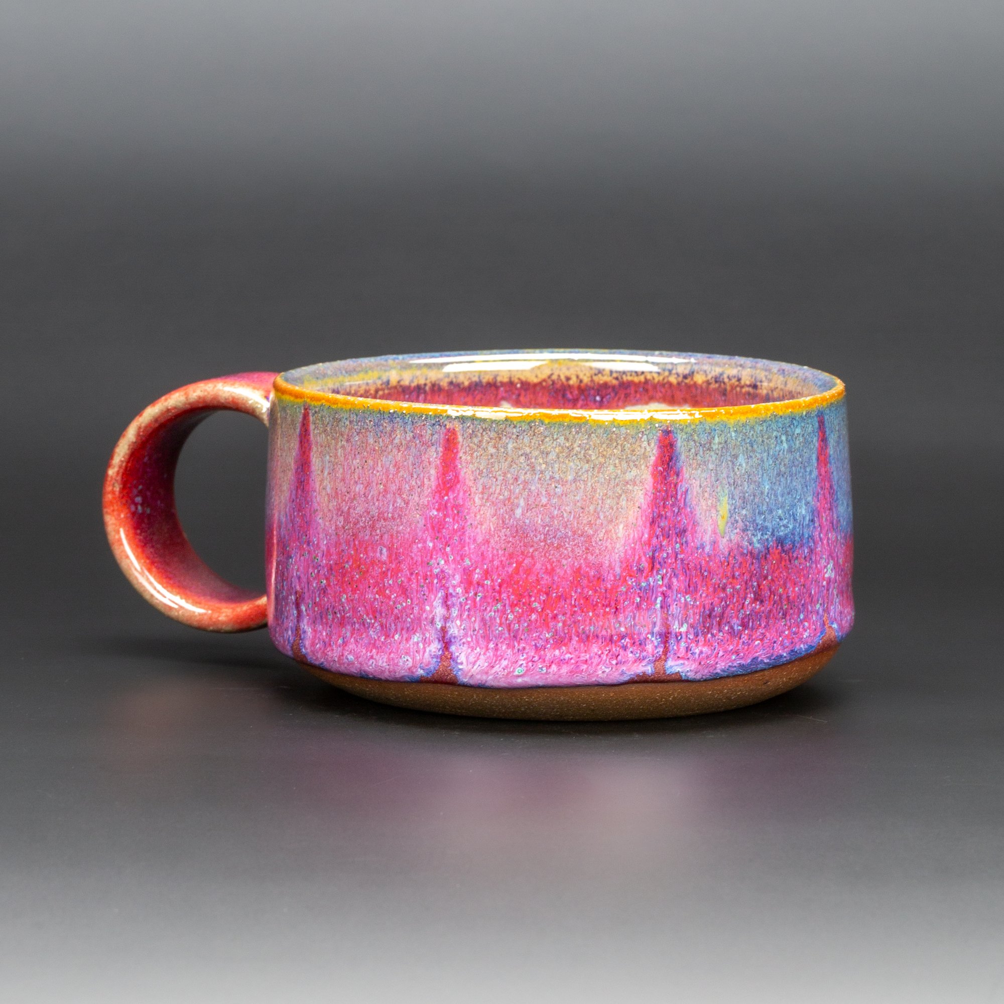 Wheel thrown dark stoneware, hand painted glaze applications, reduction fired to 1310 degrees C.