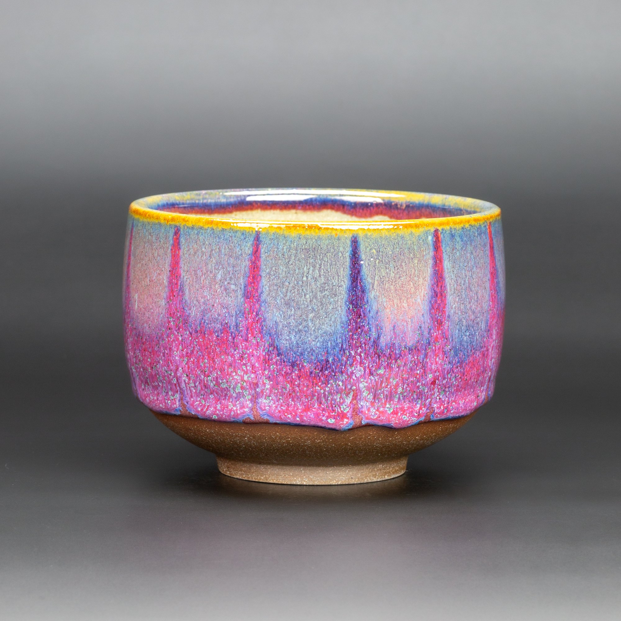 Wheel thrown dark stoneware, layered and hand painted glazes, reduction fired to 1310 degrees C.