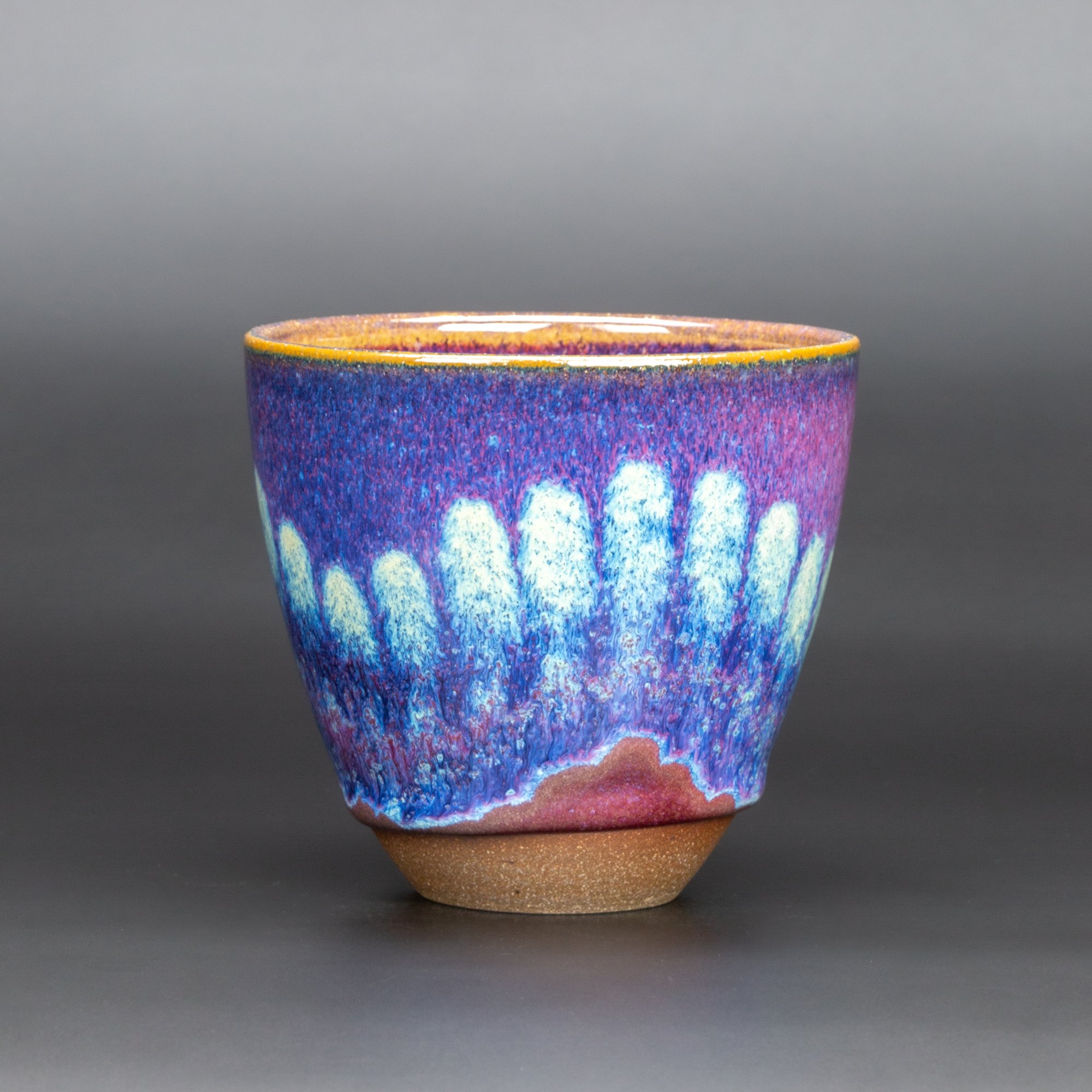 Opaque liner glazed interior, pink/purple halo.