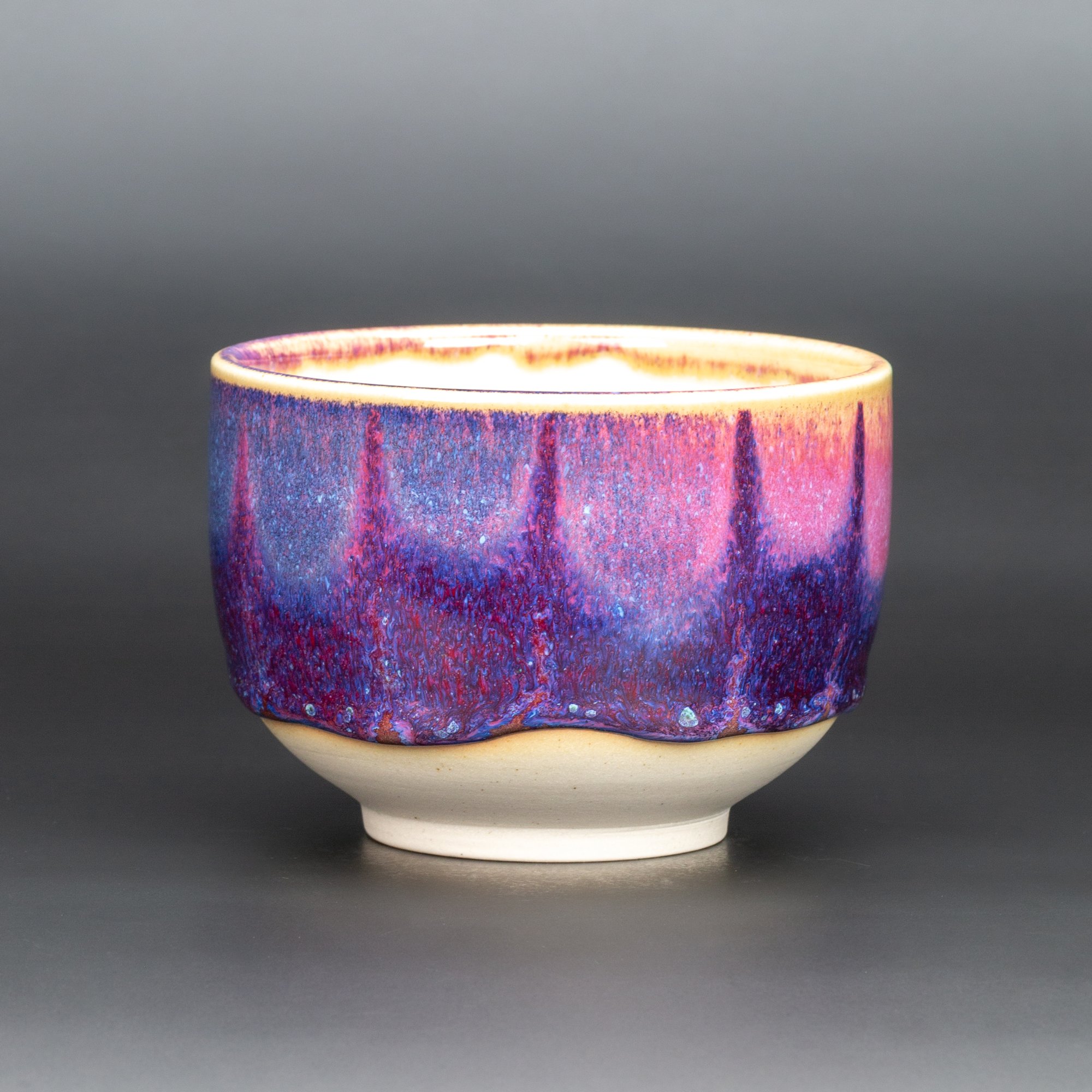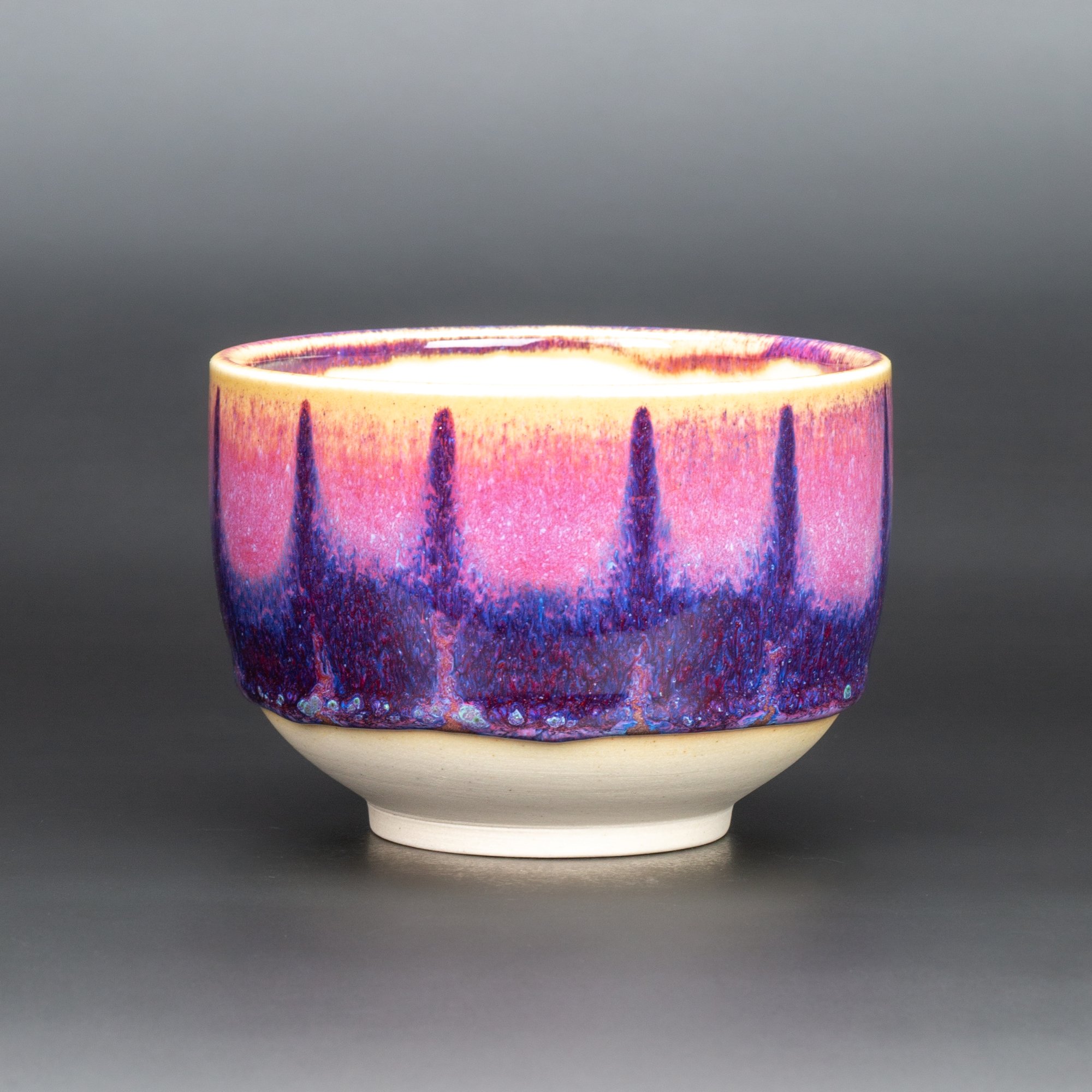 Wheel thrown fine white stoneware, layered and hand painted glazes, reduction fired to 1310 degrees C.