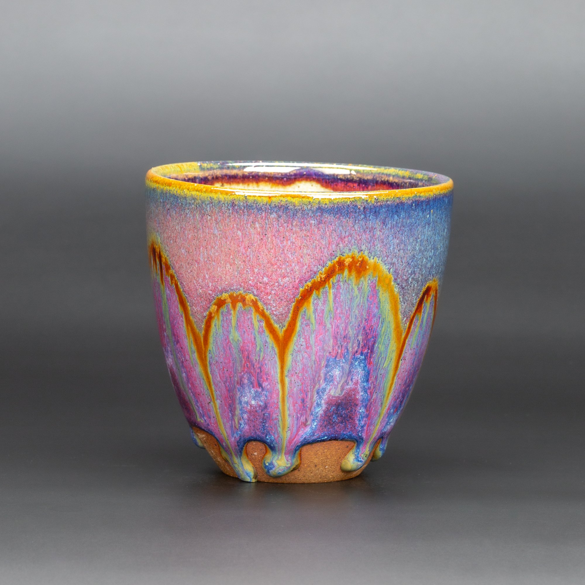 Wheel thrown dark stoneware, layered and hand painted glazes, reduction fired to 1310 degrees C.