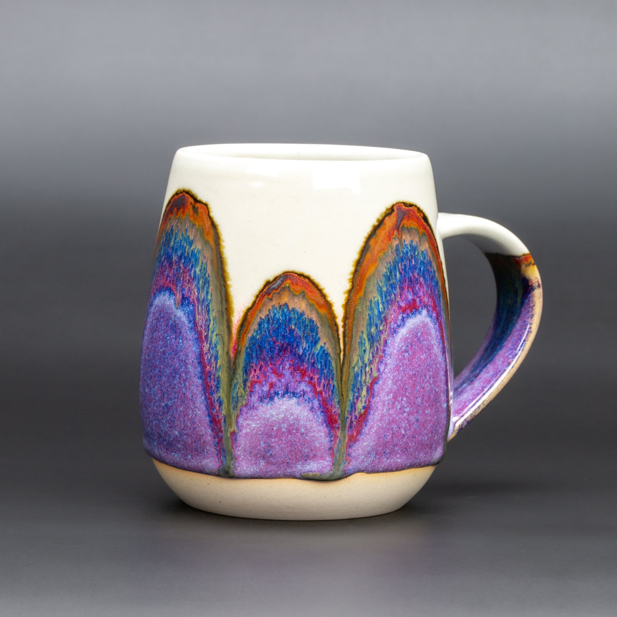 Wheel thrown fine white stoneware, layered and hand painted glazes, reduction fired to 1310 degrees C.