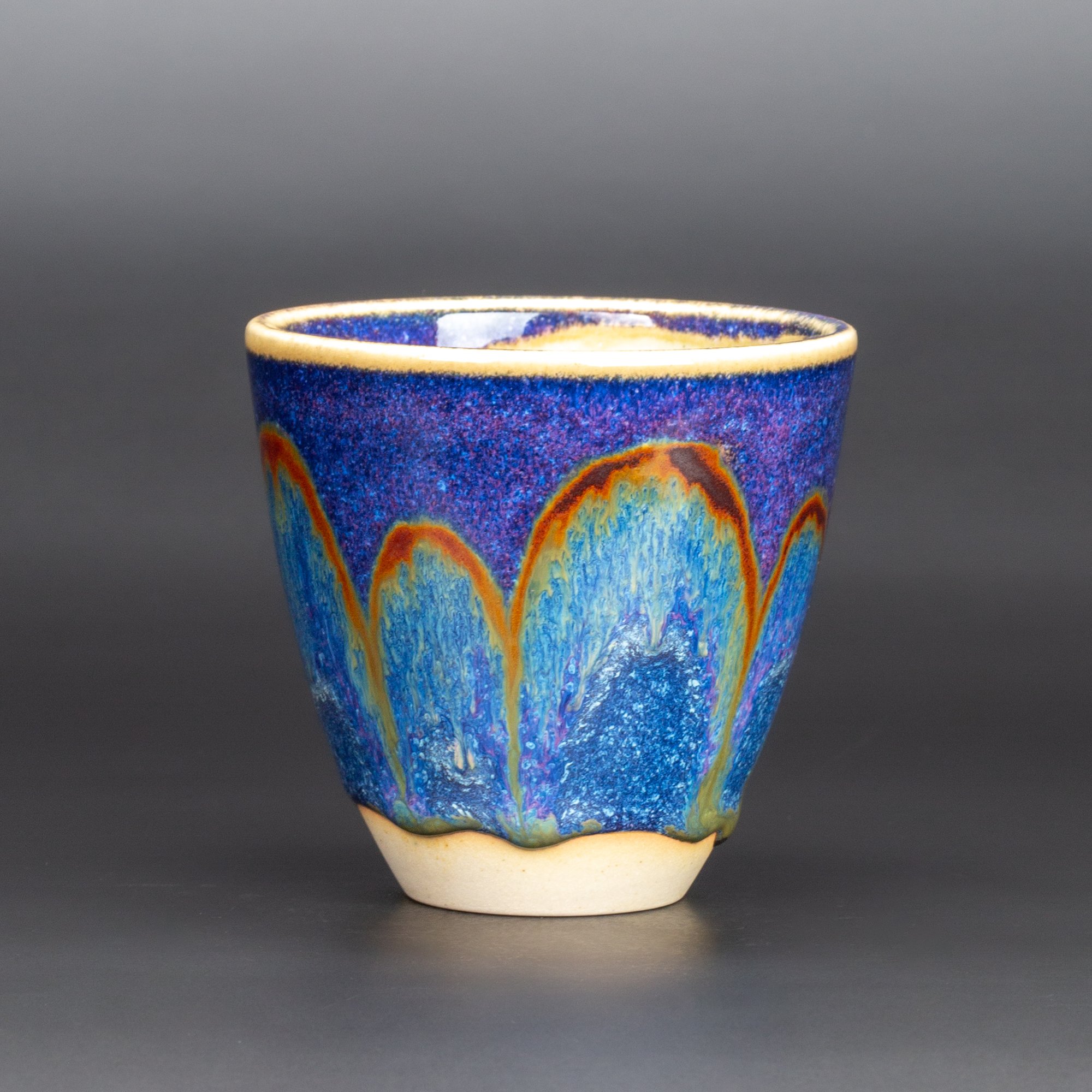 Wheel thrown fine white stoneware, layered and hand painted glazes, reduction fired to 1310 degrees C.