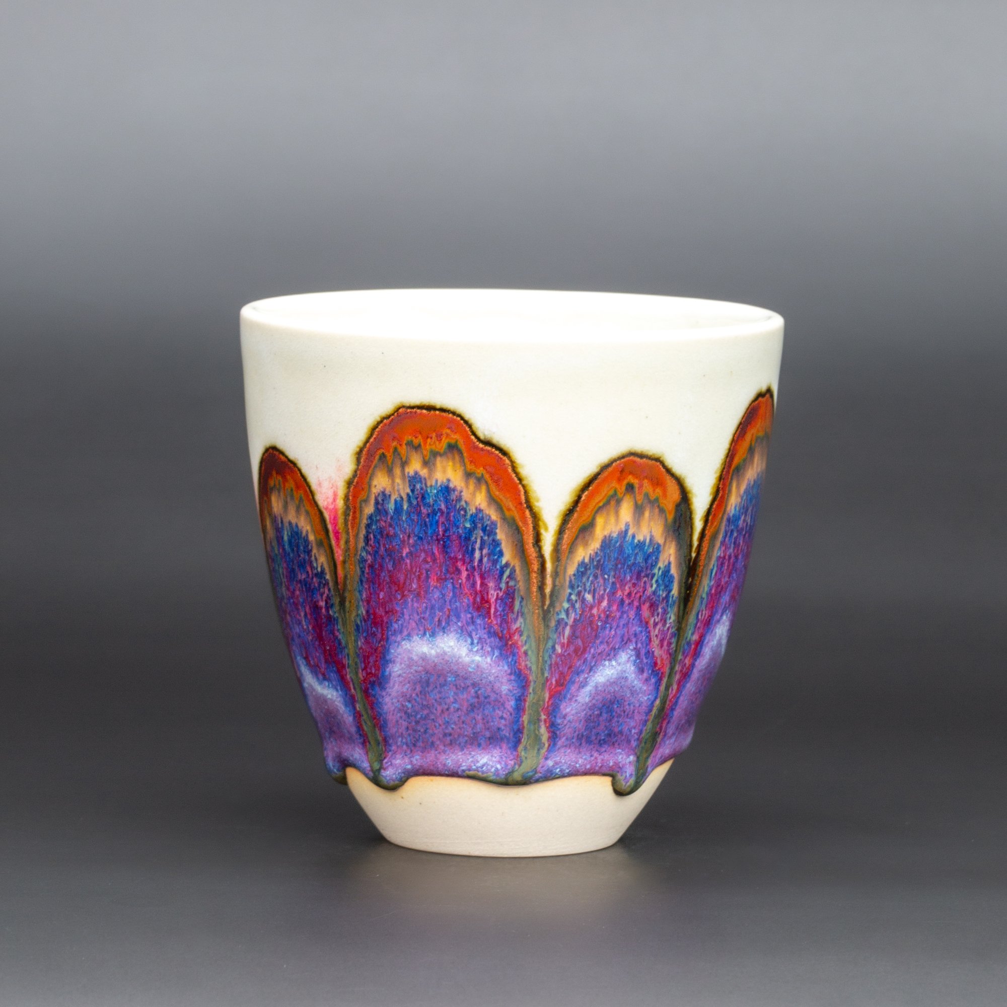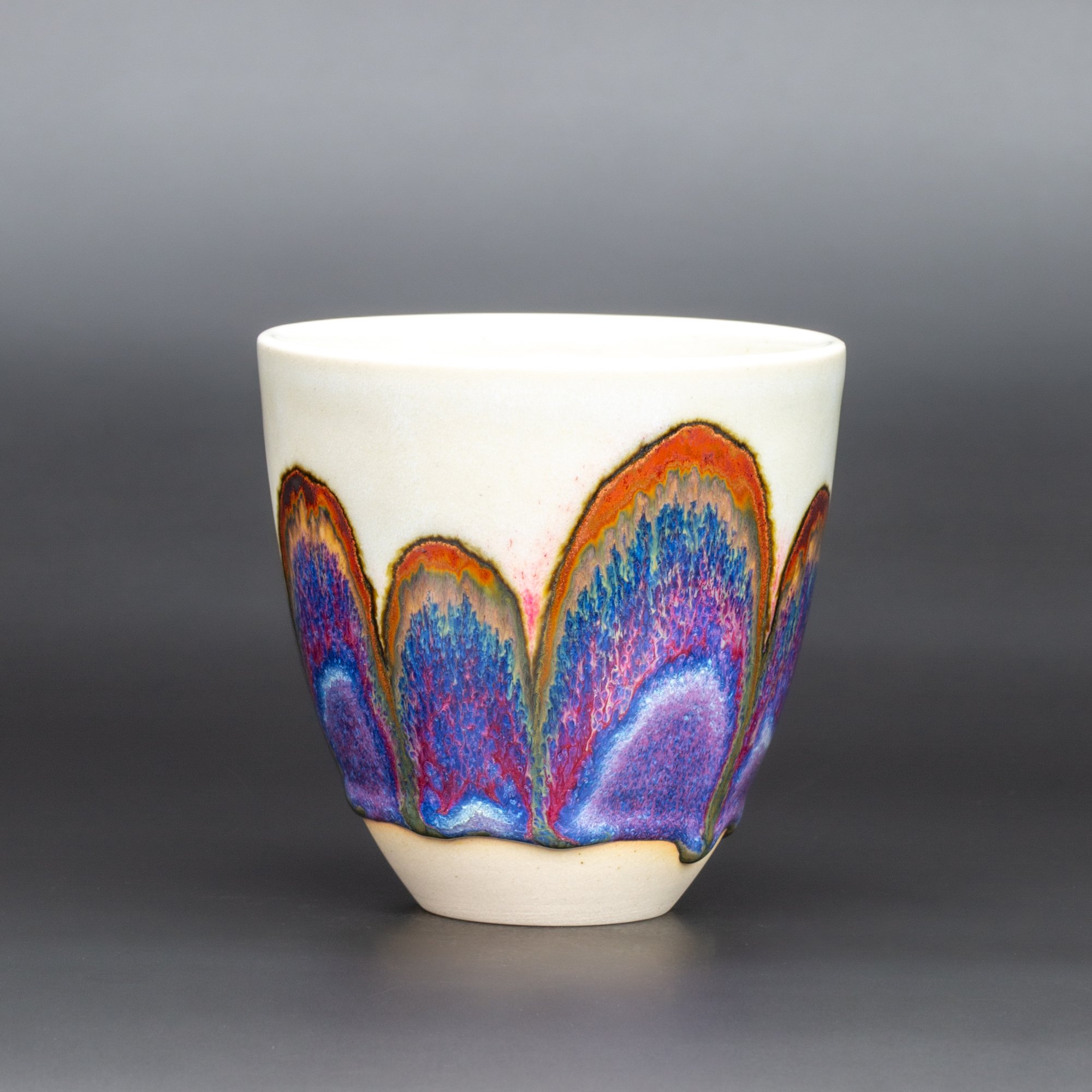 Wheel thrown Fine White Stoneware, layered and hand painted glazes, reduction fired to 1310 degrees C.