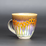 Wheel thrown fine white stoneware, layered and hand painted glazes, reduction fired to 1310 degrees C.