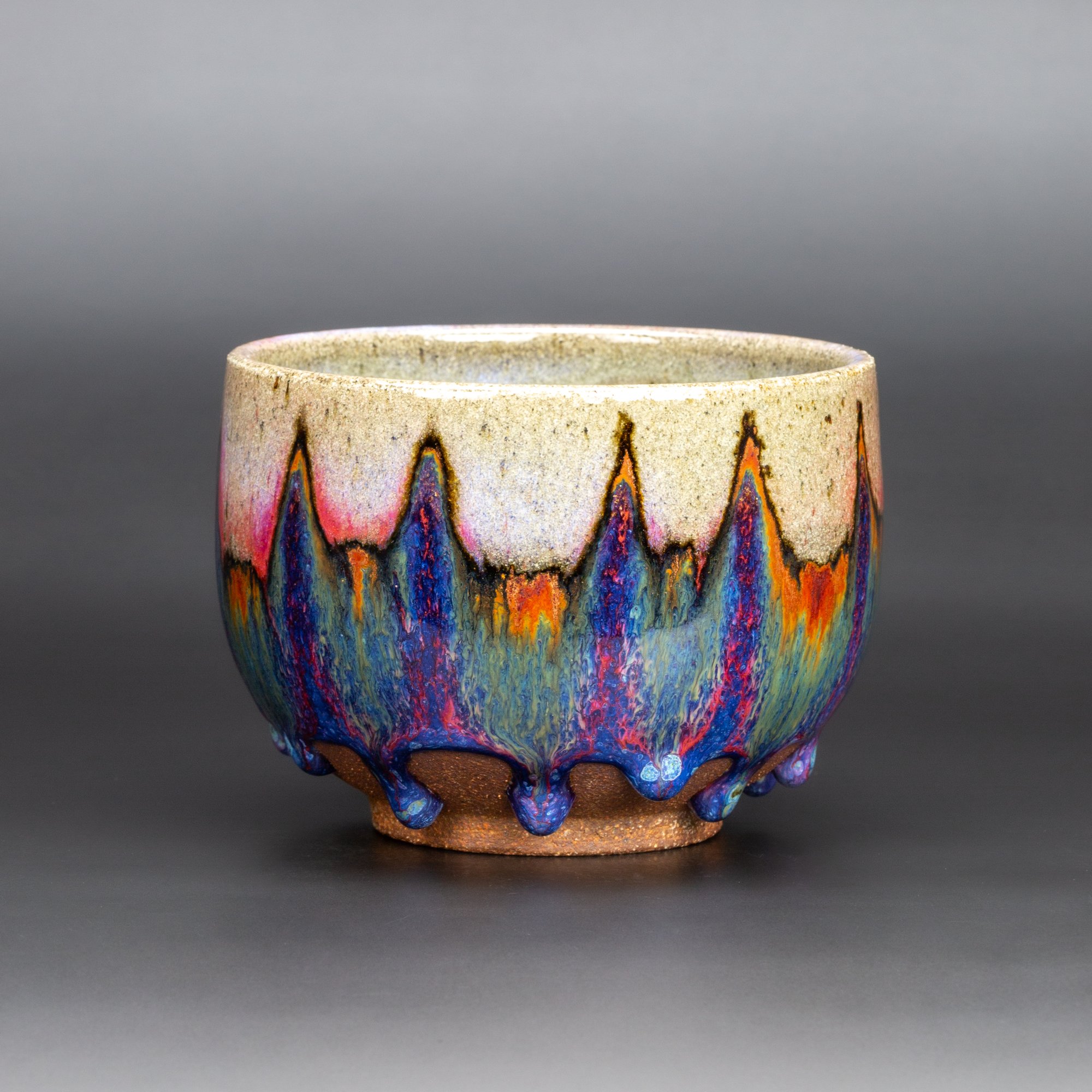 Wheel thrown Laguna Los Altos stoneware, layered and hand painted glazes, reduction fired to 1310 degrees C.