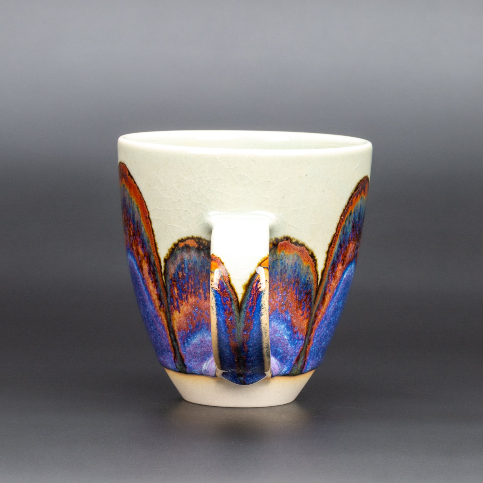 Wheel thrown fine white stoneware, layered and hand painted glazes, reduction fired to 1310 degrees C.