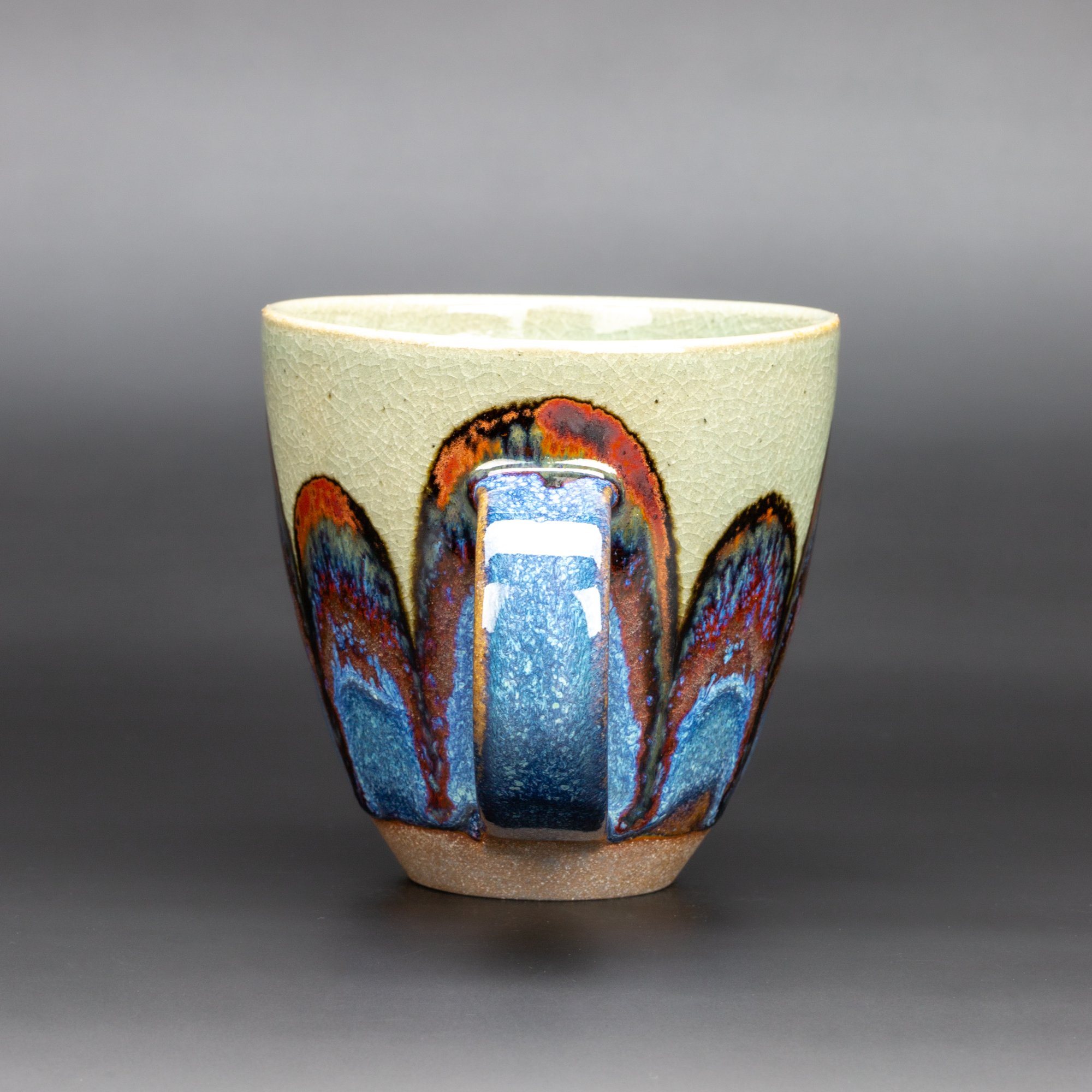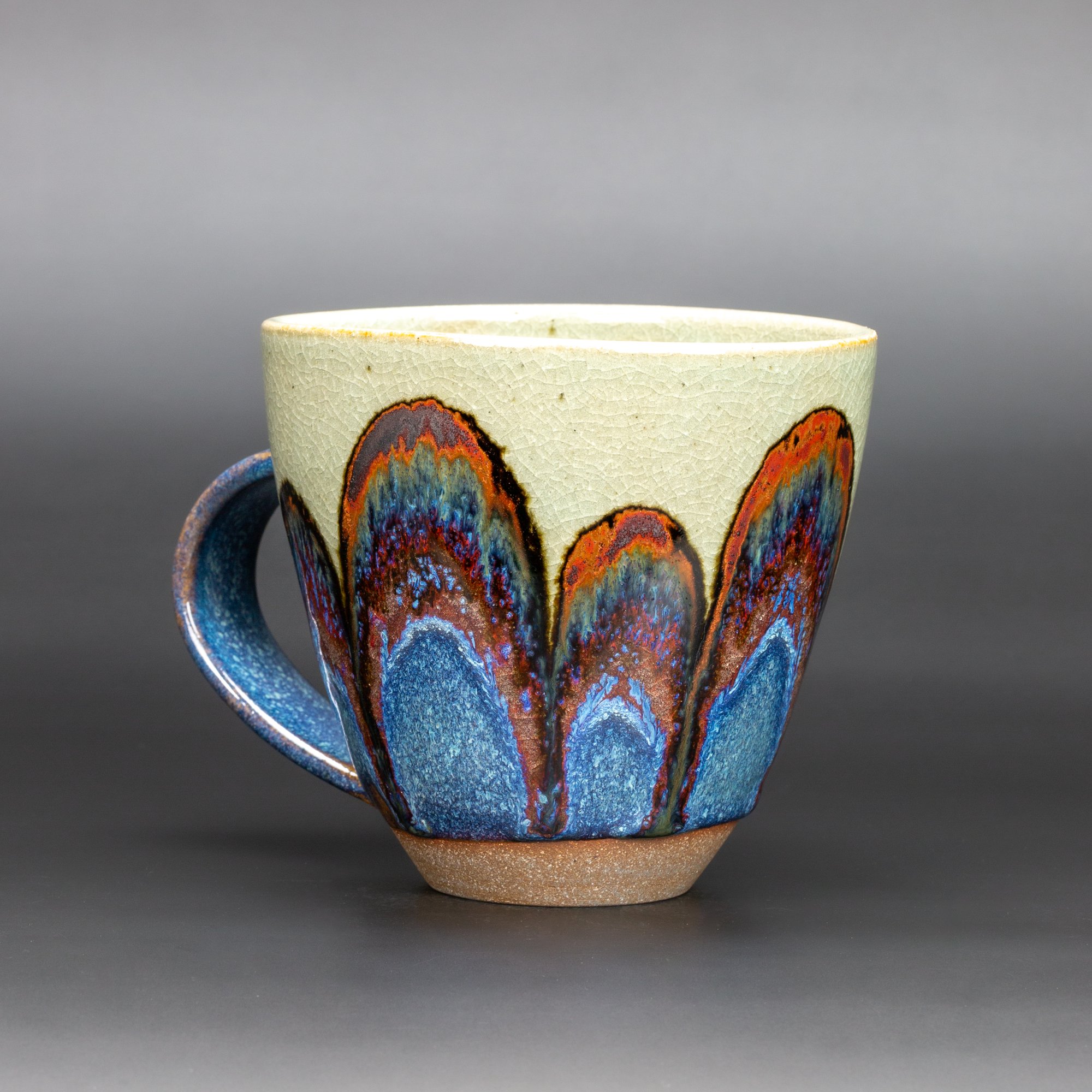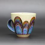 Wheel thrown dark stoneware, layered and hand painted glazes, reduction fired to 1310 degrees C.