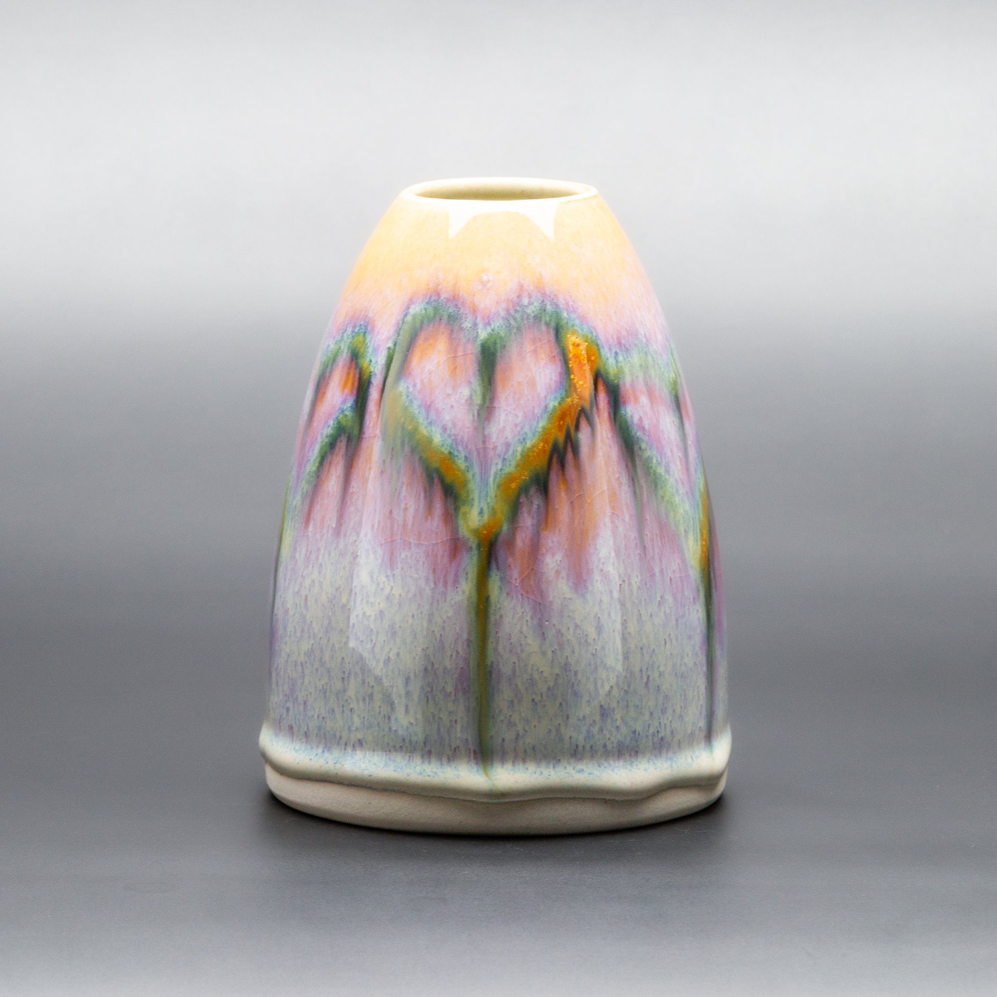 Wheel thrown fine white stoneware, layered and hand painted glazes, reduction fired to 1310 degrees C.