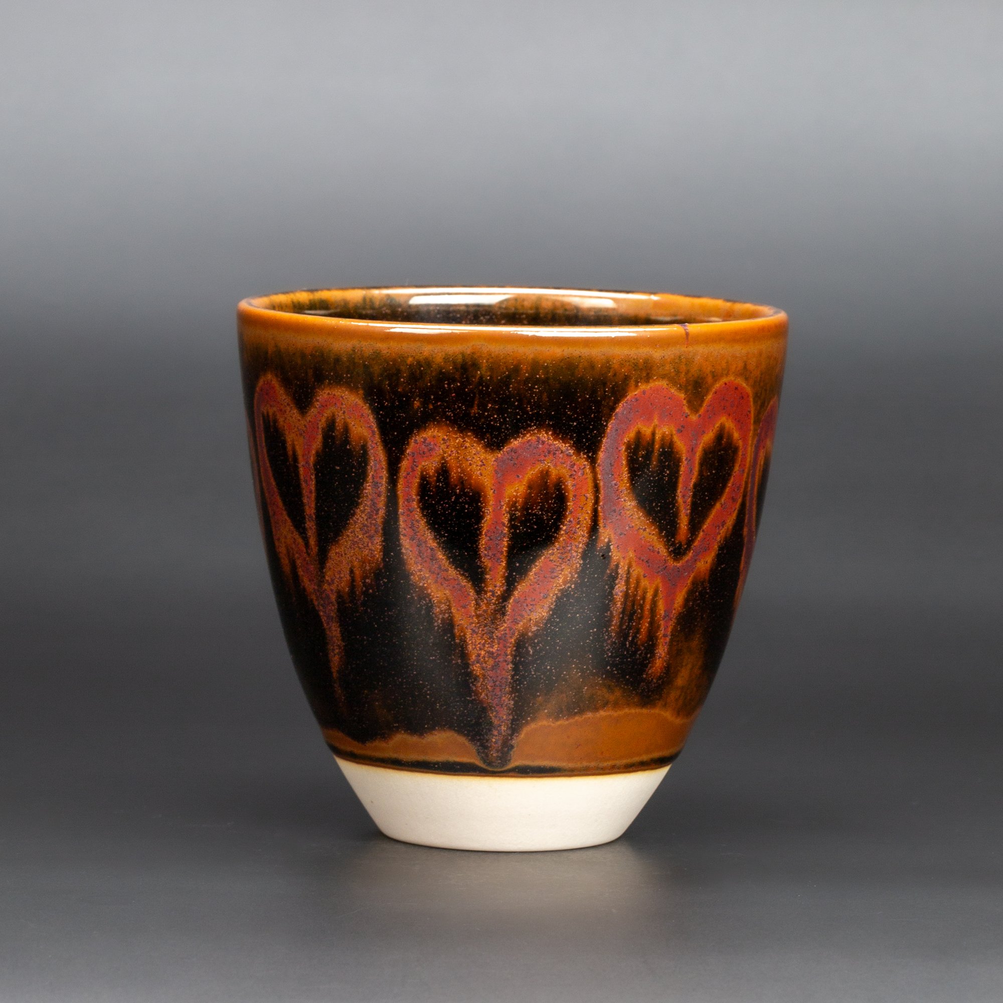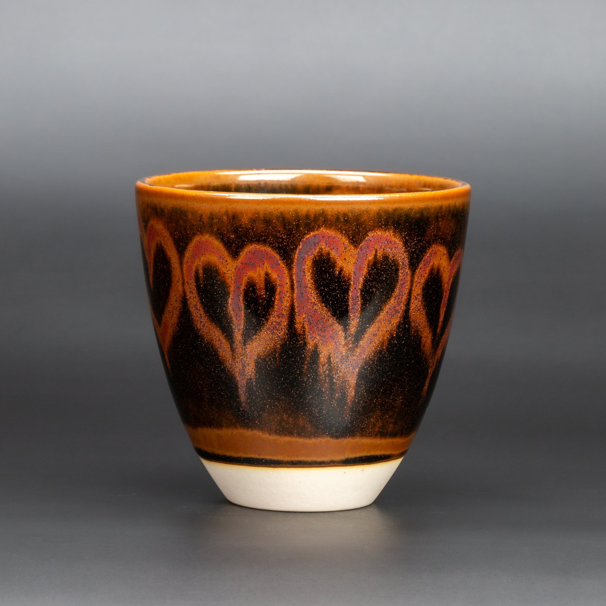 Wheel thrown fine white stoneware, layered and hand painted glazes, reduction fired to 1310 degrees C.