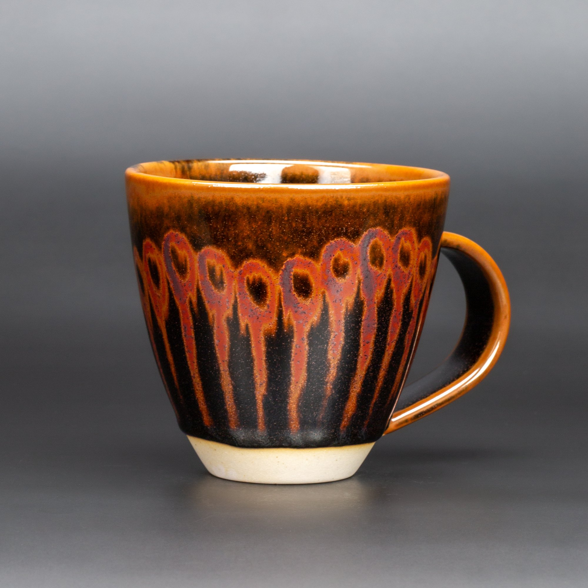 Wheel thrown fine white stoneware, layered and hand painted glazes, reduction fired to 1310 degrees C.