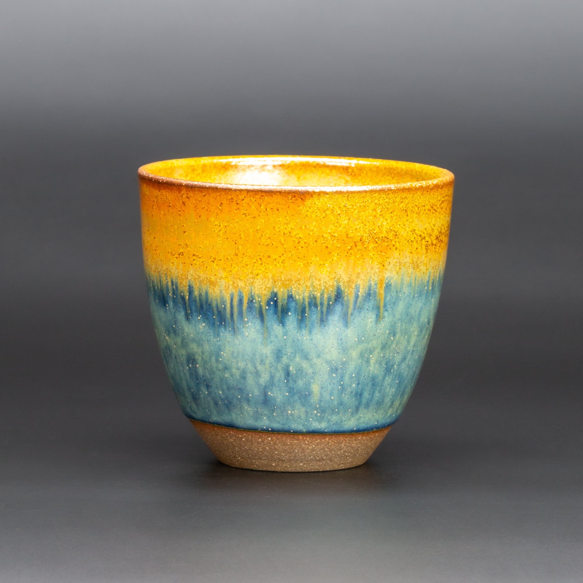 Rutile Blue/Amber glazed interior, matches exterior.