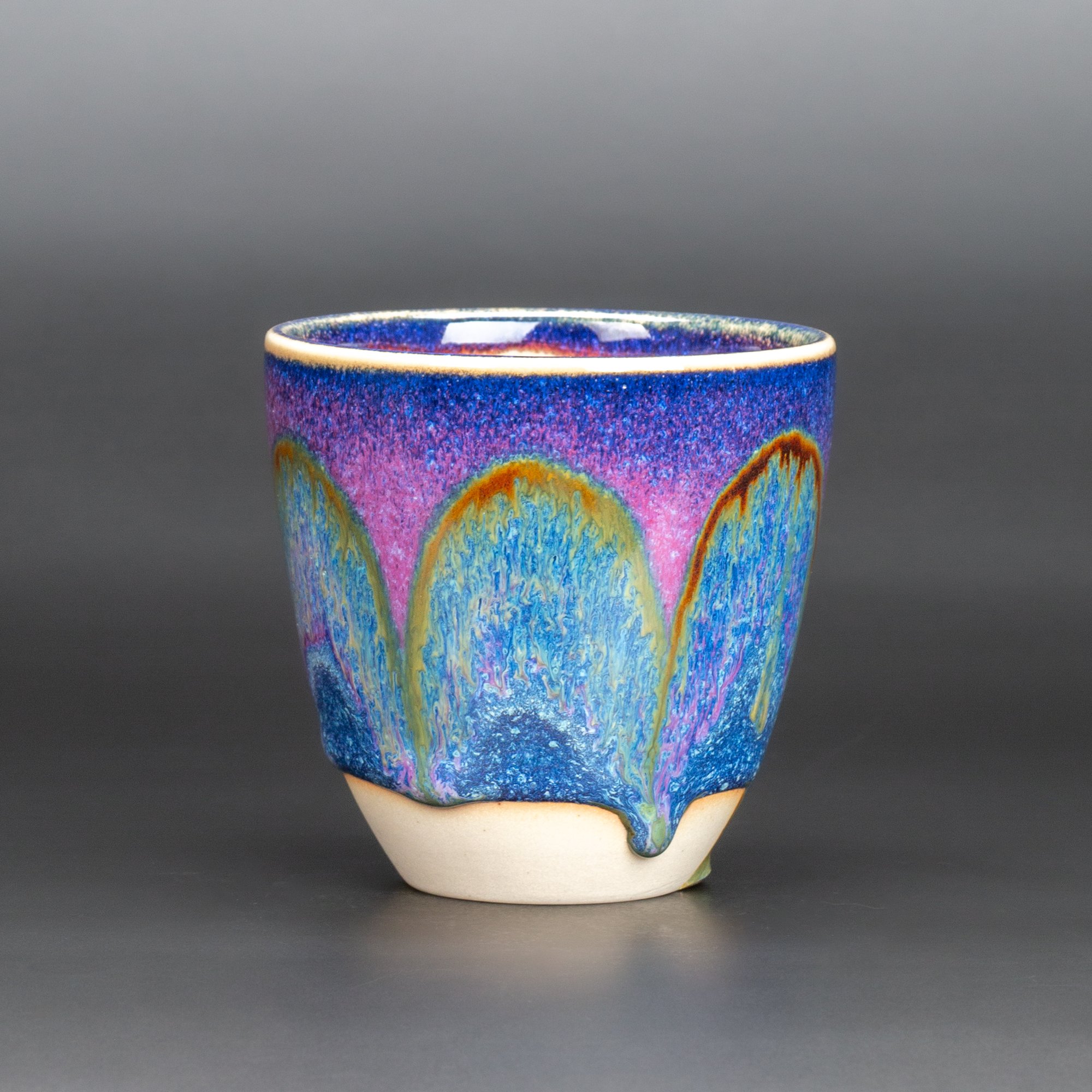 Opaque liner glazed interior, purple halo.